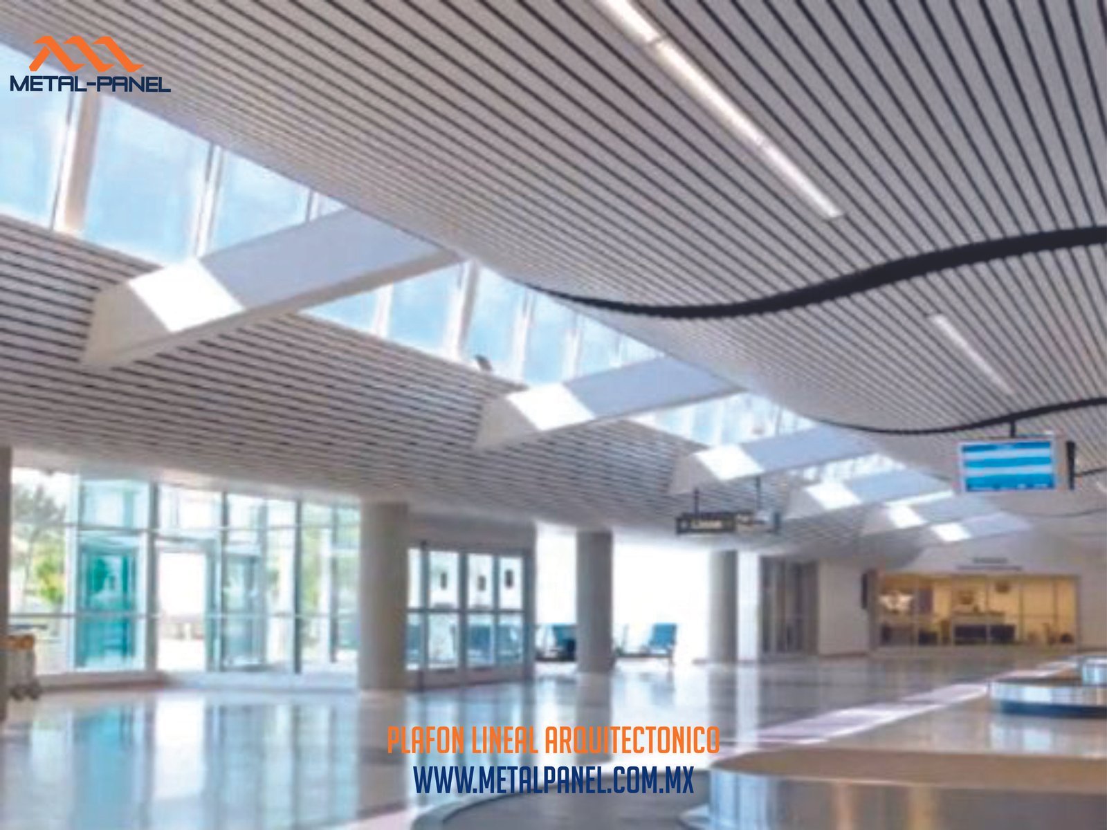 El Plafón lineal arquitectonico está conformado por 2 elementos: Rejillas y cargador de rejillas.Es posible instalar e integrar los sistemas de iluminación, calefacción, ventilación, aire acondicionado en el plafón sobre él.