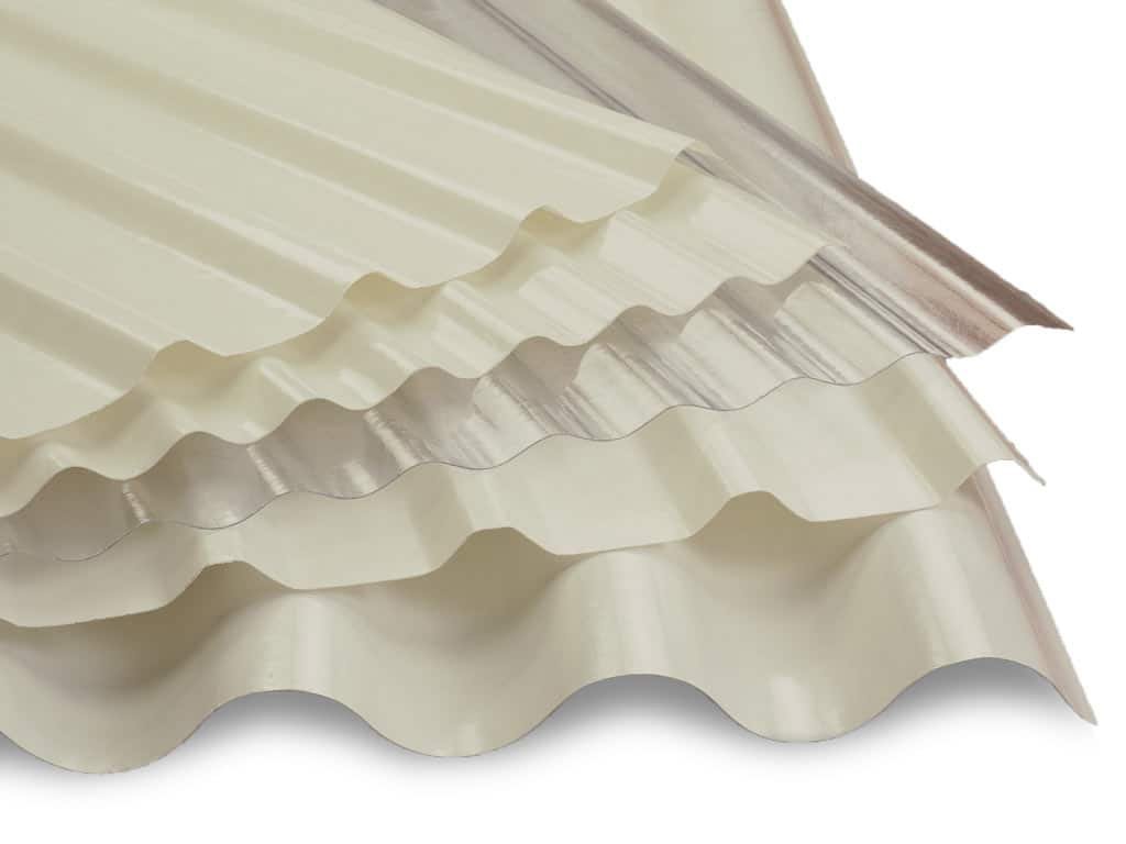 They are thermosetting translucent plastic laminates, made with polyester and acrylic resin reinforced with fiberglass.